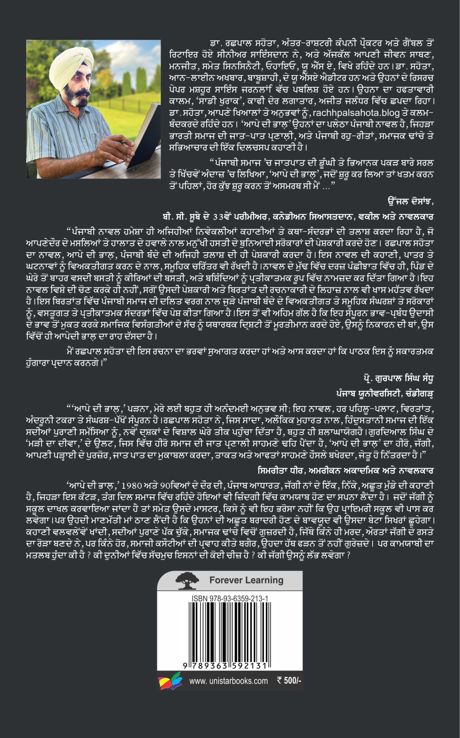 Aapye Di Bhaal By Rachhpal Sahota₹500.00 Aapye Di Bhaal quantity Add to cart Category: Novel Book details Reviews (0) Book informations ISBN 13978-93-6359-213-1Year2024Number of pages432Edition2024BindingHardcoverLanguagePunjabi Reviews There are no reviews yet. Be the first to review “Aapye Di Bhaal” Cancel replyYour email address will not be published. Required fields are marked *Your rating * Rate… Perfect Good Average Not that bad Very poor Your review *Name * Email * Save my name, email, and website in this browser for the next time I comment.