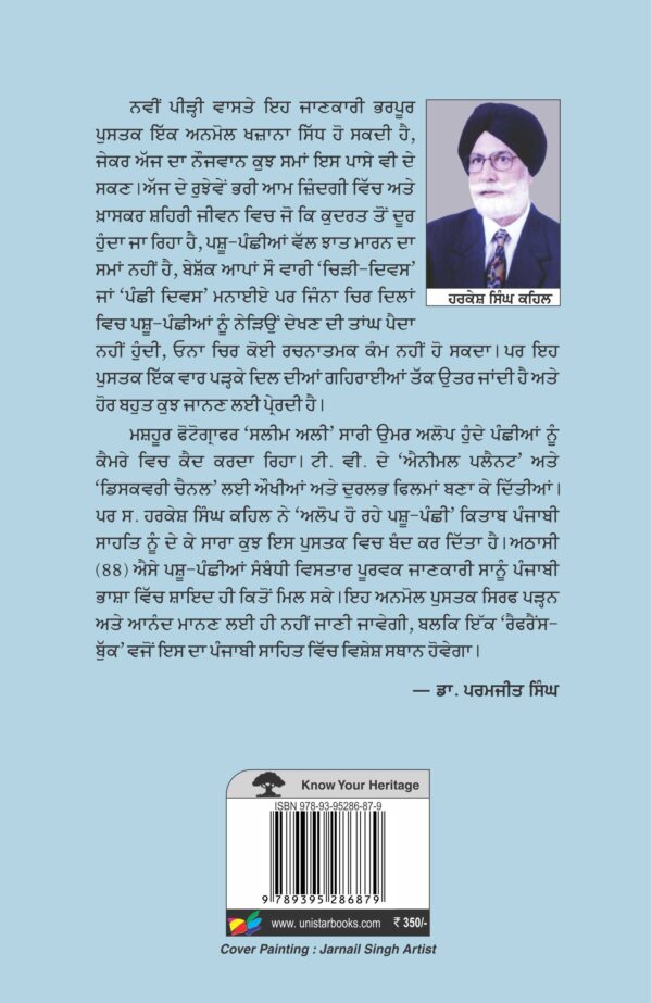 Alop Ho Rahey Pashu-Panchi By Harkesh Singh Kehal P.C.S. (Retd.)₹350.00 Alop Ho Rahey Pashu-Panchi quantity Add to cart Categories: Fauna of Punjab, Punjabi Culture Book details Reviews (0) Book informations ISBN 13978-93-95286-87-9Year2023Number of pages294Edition2023BindingPaperbackLanguagePunjabi Reviews There are no reviews yet. Be the first to review “Alop Ho Rahey Pashu-Panchi” Cancel replyYour email address will not be published. Required fields are marked *Your rating * Rate… Perfect Good Average Not that bad Very poor Your review *Name * Email * Save my name, email, and website in this browser for the next time I comment.