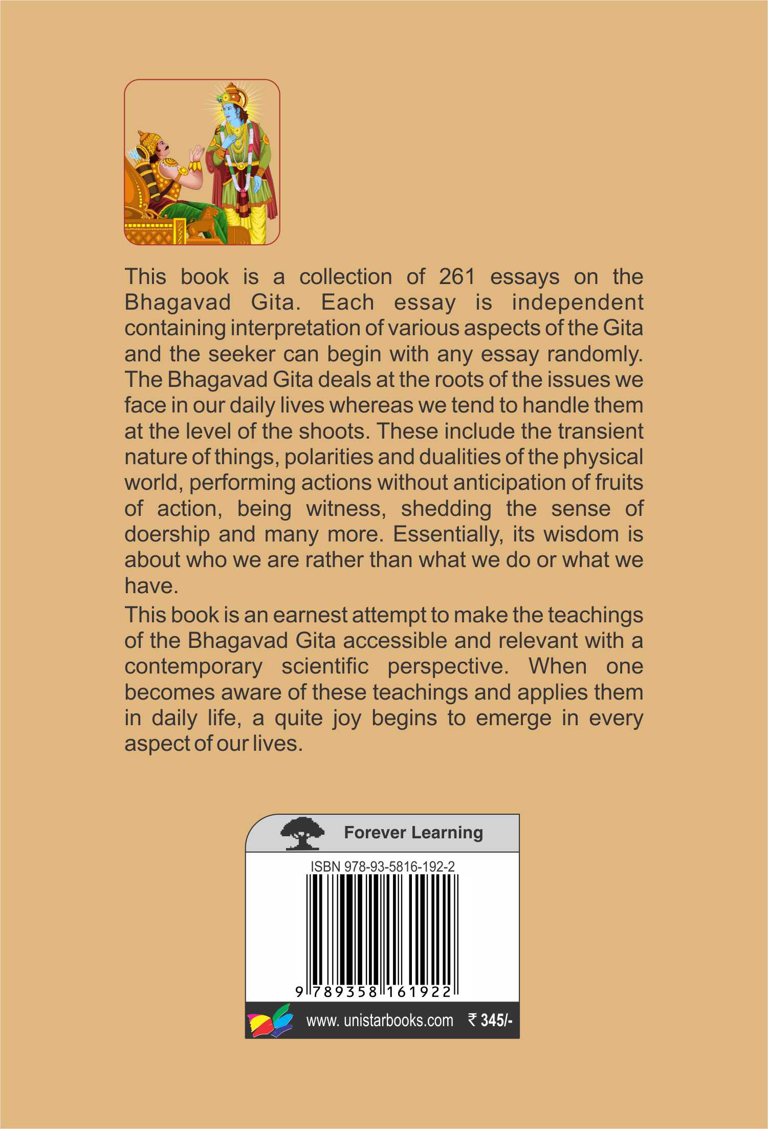 Through these essays, the author delves deep into the spiritual, philosophical, and practical teachings of the Gita — addressing the root causes of the challenges we face in our daily lives, rather than just their surface symptoms. The writings explore the transient nature of the world, the importance of self-awareness, and the path toward inner peace and purpose.
