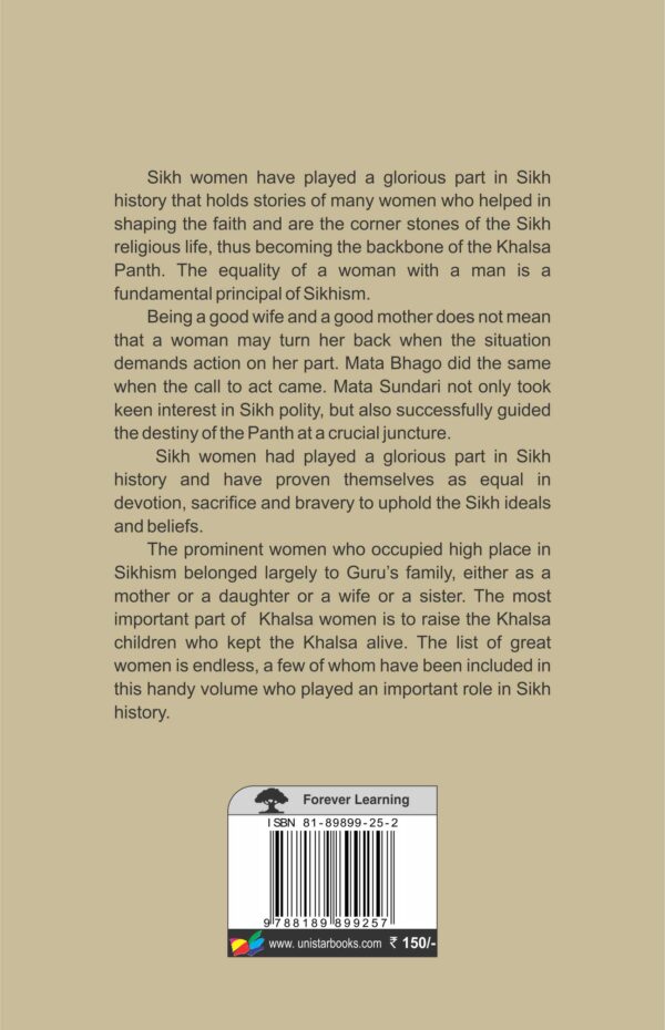 The book “Great Sikh Women” is an inspiring account of the remarkable role that women have played in shaping Sikh history and the Khalsa Panth. It highlights the courage, wisdom, and devotion of Sikh women who became pillars of faith and strength within the community.