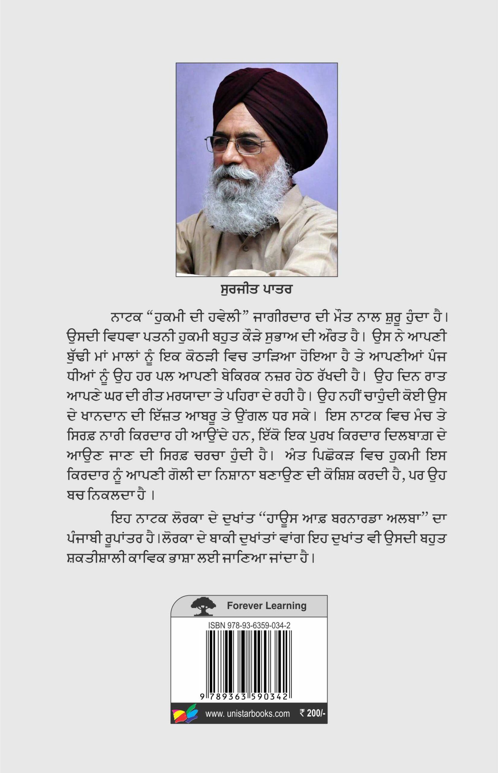 Hukmi Di Haveli By Surjit Patar₹150.00 Hukmi Di Haveli quantity Add to cart Categories: Natak, Punjabi Natak Tag: Natak Book details Reviews (0) Book informations Number of pages80Edition2004LanguagePunjabi Reviews There are no reviews yet. Be the first to review “Hukmi Di Haveli” Cancel replyYour email address will not be published. Required fields are marked *Your rating * Rate… Perfect Good Average Not that bad Very poor Your review *Name * Email * Save my name, email, and website in this browser for the next time I comment.