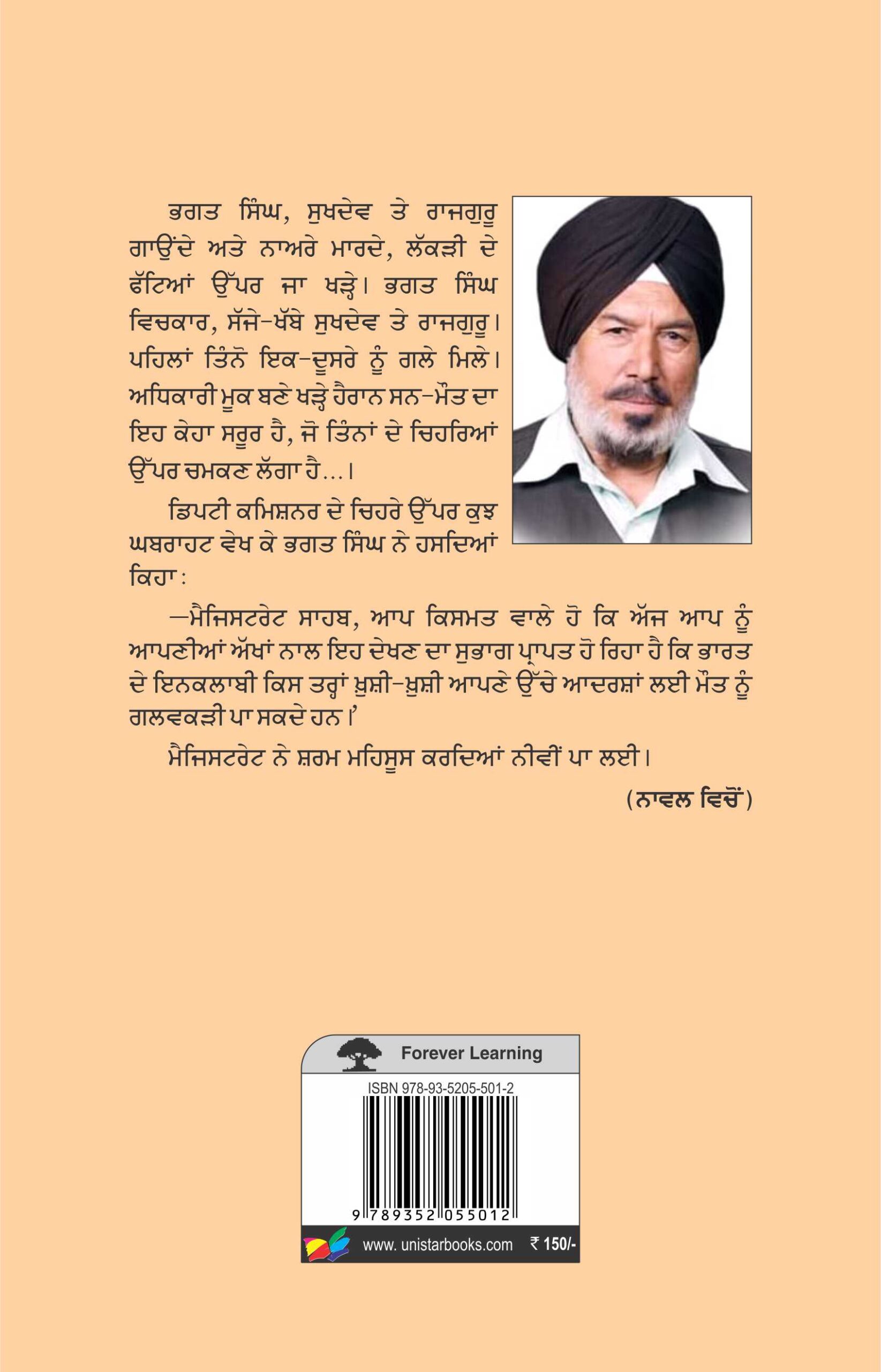 ਨਾਵਲ ਵਿੱਚ ਉਨ੍ਹਾਂ ਦੀ ਸੋਚ, ਕ੍ਰਾਂਤੀਕਾਰੀ ਕਿਰਿਆਵਾਂ, ਸਾਥੀਆਂ ਨਾਲ ਰਿਸ਼ਤੇ ਅਤੇ ਆਜ਼ਾਦੀ ਲਈ ਦਿੱਤੀ ਬੇਮਿਸਾਲ ਸ਼ਹਾਦਤ ਨੂੰ ਜੀਵੰਤ ਢੰਗ ਨਾਲ ਪੇਸ਼ ਕੀਤਾ ਗਿਆ ਹੈ।
