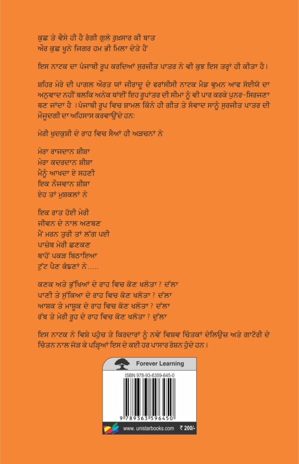 ਸ਼ਹਿਰ ਮੇਰੇ ਦੀ ਪਾਗਲ ਔਰਤ ਇਕ ਅਨੁਕਰਿਤ ਨਾਟਕ ਹੈ ਜੋ ਆਪਣੇ ਵਿਲੱਖਣ ਸਿਰਲੇਖ ਕਰਕੇ ਹੀ ਦਿਲਚਸਪੀ ਜਗਾਉਂਦਾ ਹੈ। “ਪਾਗਲਪਨ” ਹਮੇਸ਼ਾਂ ਮਨੁੱਖੀ ਮਨ ਵਿਚ ਇਕ ਅਨੋਖੀ ਉਤਸੁਕਤਾ ਪੈਦਾ ਕਰਦਾ ਹੈ। ਇਹ ਨਾਟਕ ਪਾਗਲਪਨ ਨੂੰ ਇਕ ਬੱਦਲ ਵਾਂਗ ਦਰਸਾਉਂਦਾ ਹੈ ਜੋ ਕਦੇ ਅੰਦਰੂਨੀ ਮਨ ਦੀਆਂ ਗਹਿਰਾਈਆਂ ਵੱਲ ਵਗਦਾ ਹੈ ਤਾਂ ਕਦੇ ਬਾਹਰਲੇ ਸੰਸਾਰ ਵੱਲ। ਇਸ ਤਰ੍ਹਾਂ ਇਹ ਨਾਟਕ ਵੱਖ-ਵੱਖ ਰੂਪਾਂ ਅਤੇ ਅਨੁਭਵਾਂ ਦੇ ਸੋਮੇ ਪੈਦਾ ਕਰਦਾ ਹੈ।